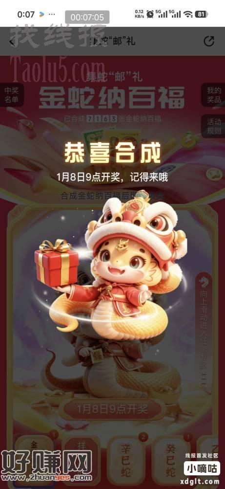 邮储集卡的每天都去,坚持总能抽到最后一张,我今天出了