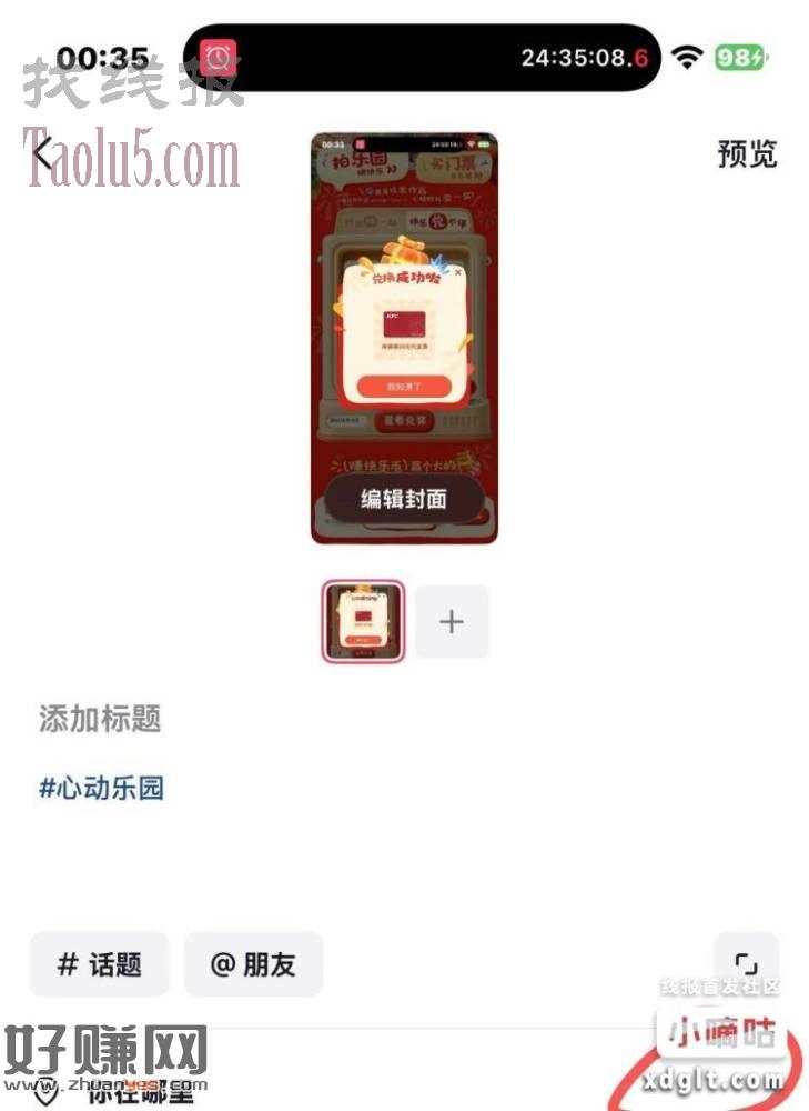 抖音搜 心动乐园(做分享要求和观看要求,然后第一个发视频要求,视频要求需要不屏蔽别人带上乐园地区和标签不然不加),80币换20肯德基代金券