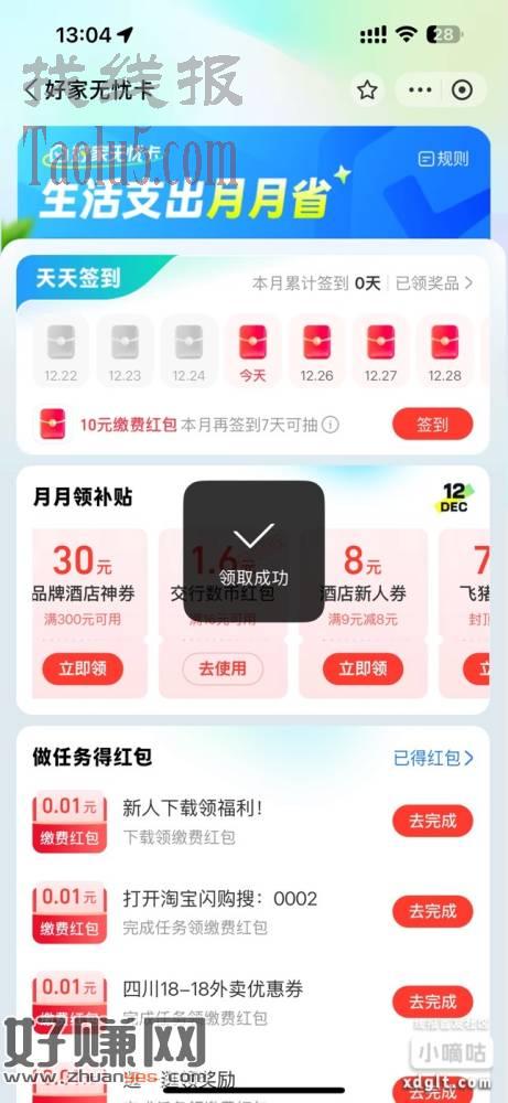 zfb搜:好家无忧卡,月月领补贴,右滑可领1.6交行数币满16可用