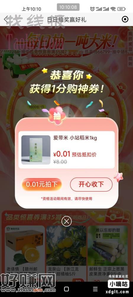 邮储首页,或者生活首页,抽大米,每日可抽,不知道限不限地区,自测