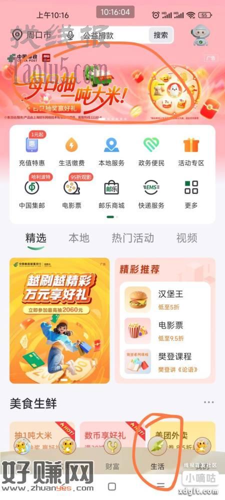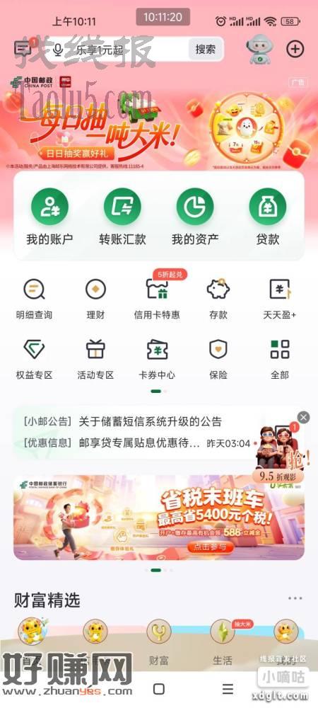 邮储首页,或者生活首页,抽大米,每日可抽,不知道限不限地区,