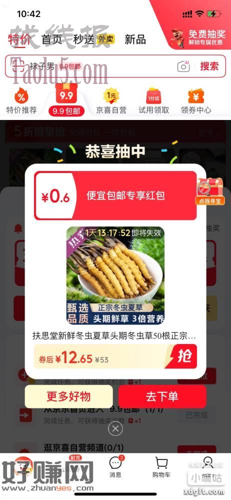 首页,9.9包邮,天天抽好运。就是领五折券那页面