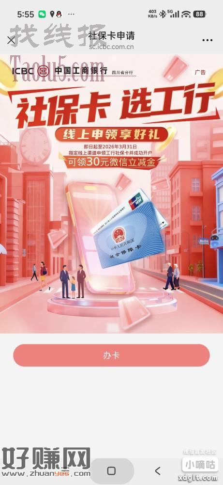 没有工行社保卡的可以申请四川绵阳工行社保卡,有三十立减金