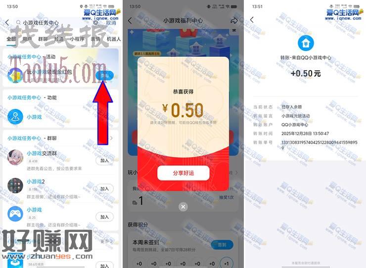 亲测0.5元现金秒到 手Q玩小游戏领现金红包