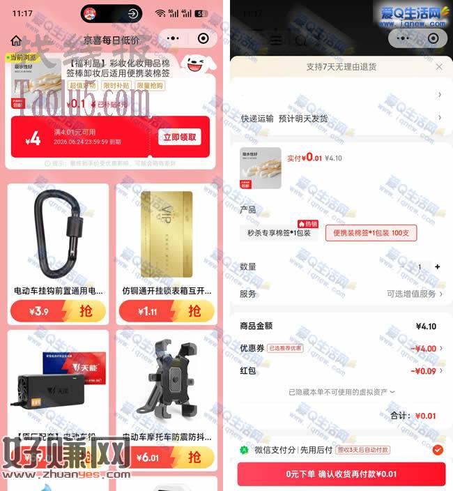 京东0.1元购100支棉签 多号可多撸