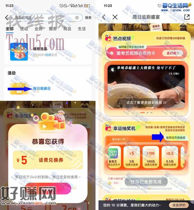 中国移动APP顶部搜【周日视频日】点进去【攒福利值】完成任务可以抽话费 现在完成任务周日抽奖