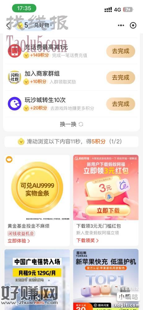 支付宝积分这里去看有没有AQ广告,下载3元广告