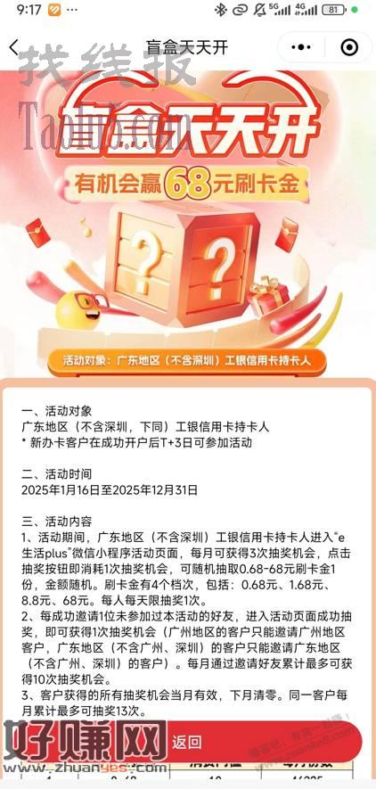 广东工行盲盒天天开中8.8元,因为分享有邀请就不发了,自己找一下,我中了两个8.8