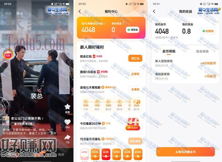 微信扫码-下载打开喜番短剧APP-底部【福利】-进去领0.8元,再领金币-第二天记得提现