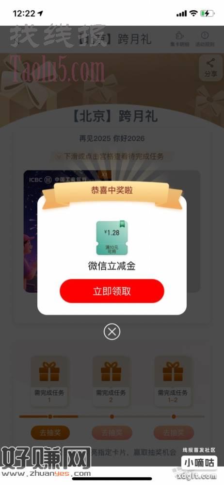 北京工行活动路径:任务中心——享活动——北京跨月礼