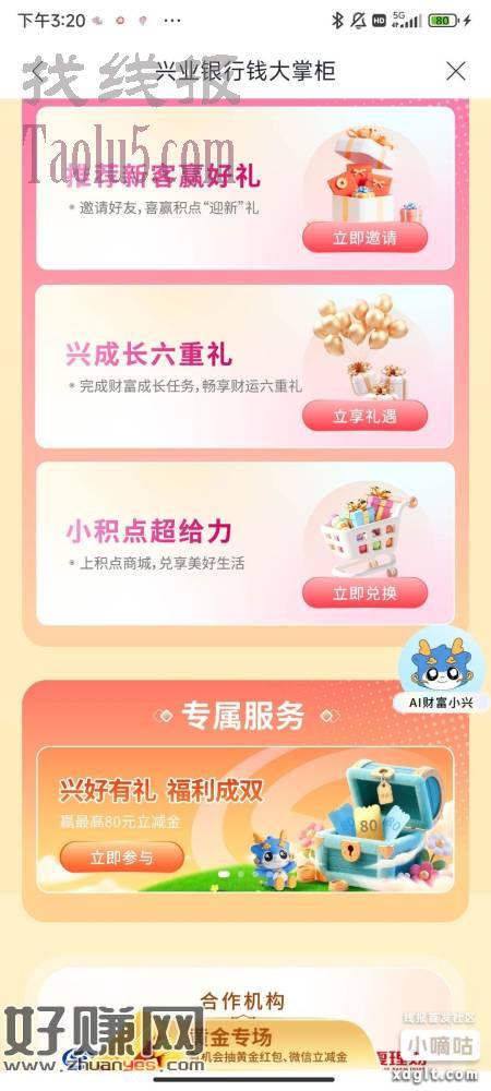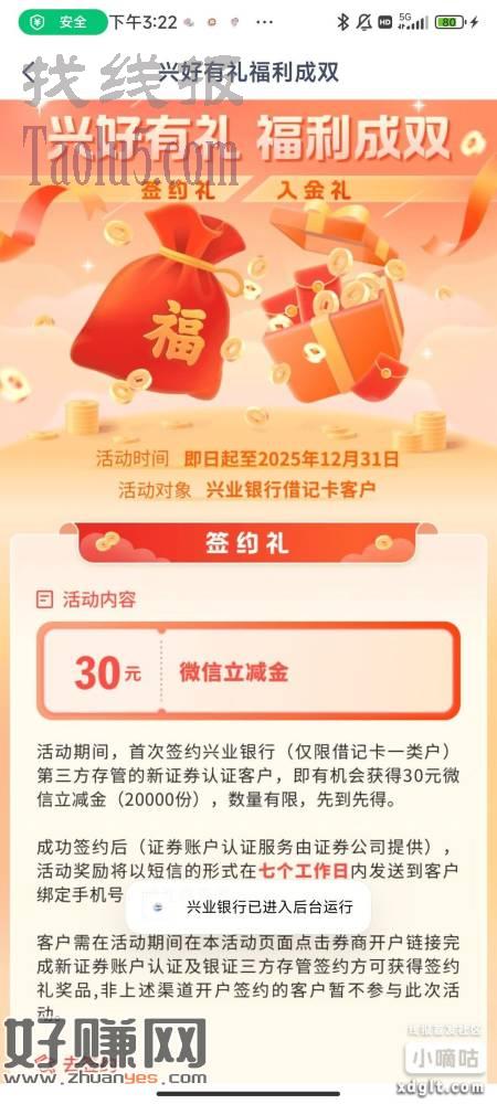 有兴业银行1类卡的去做第三方存管 理财节下滑找到这个兴好有你 我是上星期做的今天给我发了 首页横幅新活动龙门做任务抽立减金