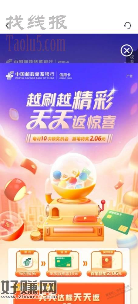 邮储xing/用卡报名,首笔消费16必得2.06元