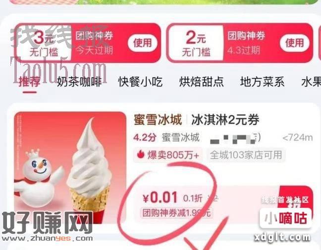弹无门槛优惠券3 2,可 0.01买2份蜜雪