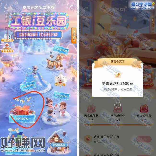 工行岁末狂欢礼抽i豆 亲测2600个工银i豆