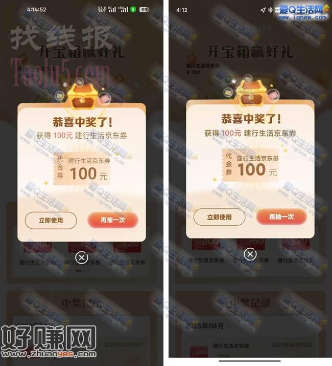 建行开宝箱抽奖活动,现在是只能抽建行生活京东券
