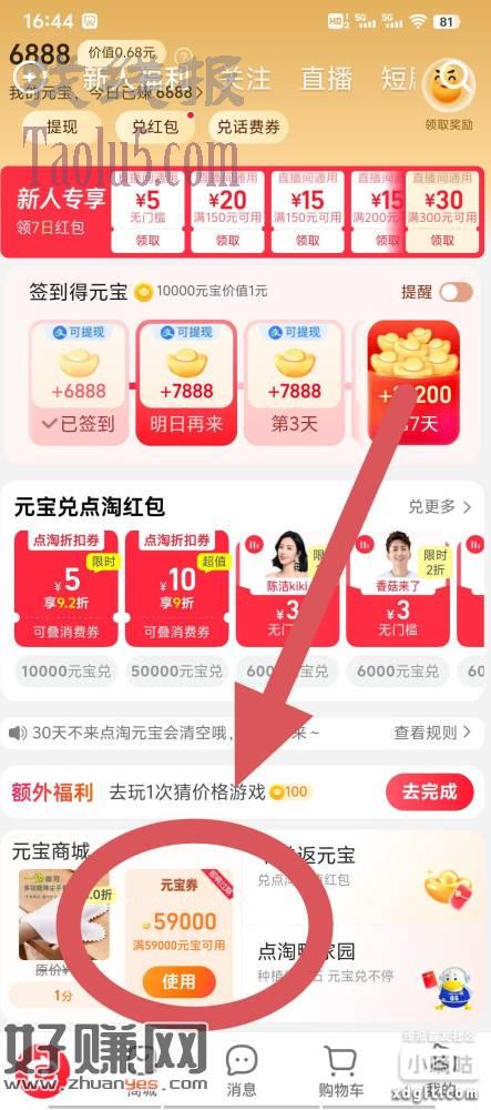 下载点淘app-元宝中心 看图领 然后兑换优惠券即可 不限新老 不过经常使用的应该没有