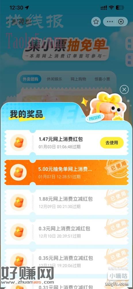 zfb 搜 集小票抽免单,每天可以有2个小票,发2个5块的微