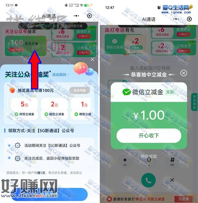移动AI通话关注公众号 必中1-100元立减金