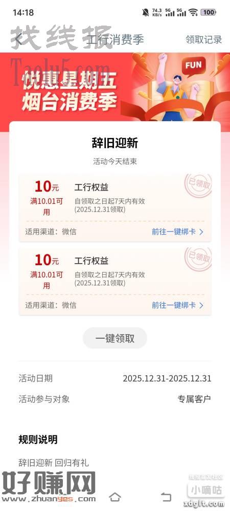 下面辞旧迎新【2张】10元立减金补货了!